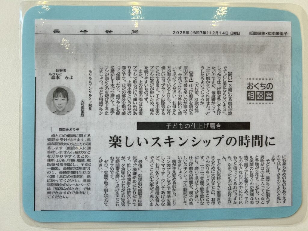 長崎新聞の『おくちの相談室コーナー』に、院長の記事が掲載されました📰✨️